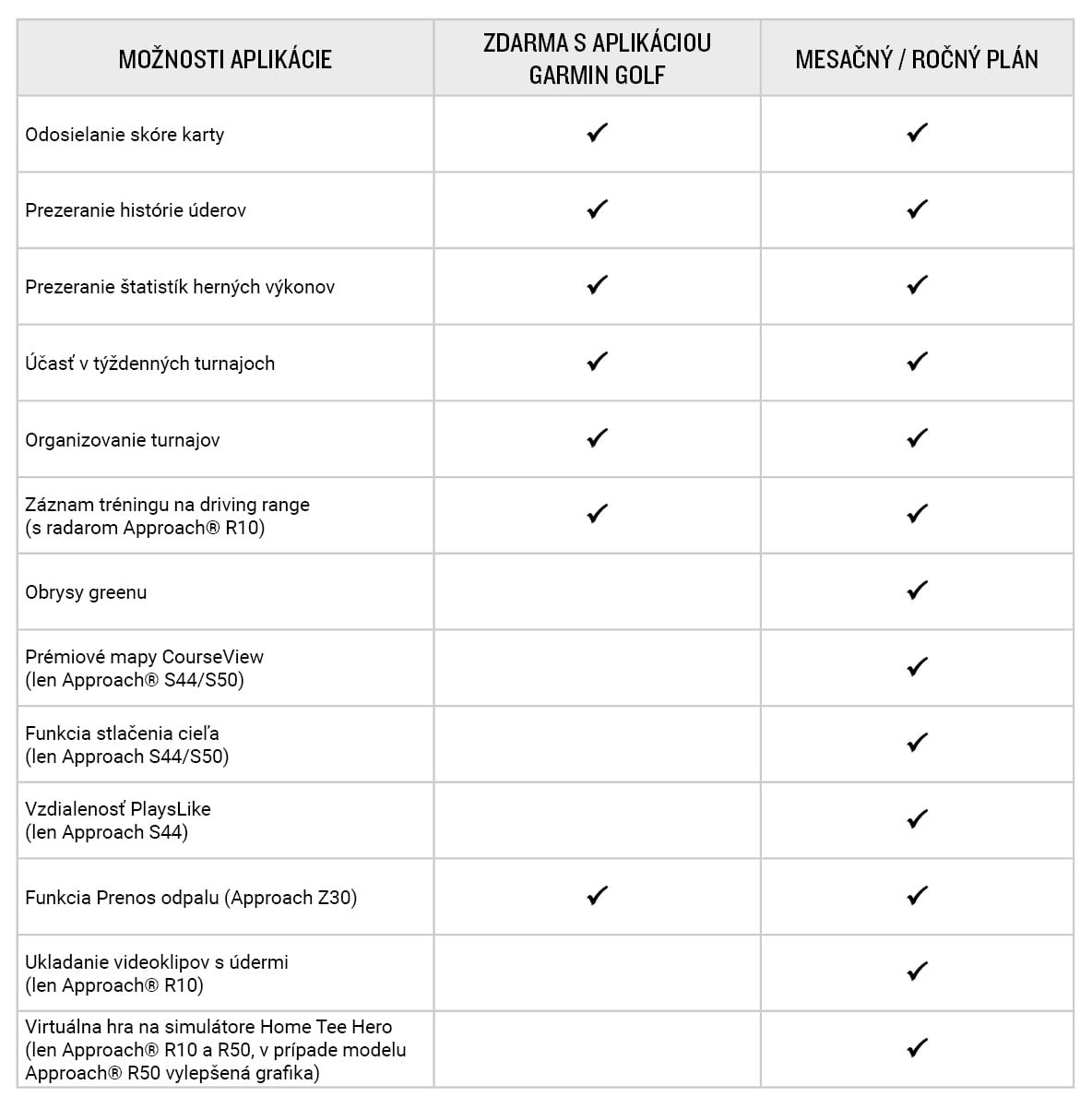 Predplatné aplikácie Garmin Golf vám umožní prístup k prémiovým funkciám aplikácie Golf – možnosť mesačného alebo ročného predplatného. Takto môžete svoju hru zlepšovať po celý rok.